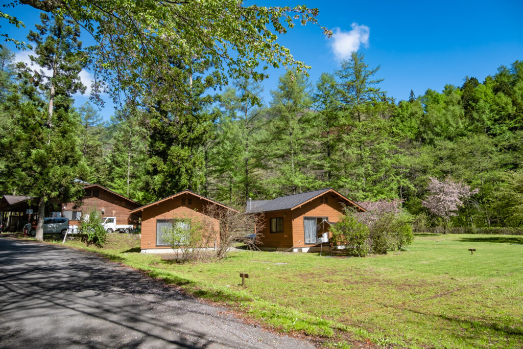 キャンプ場から少し離れたところにある閑静なコテージエリア。開放感あふれるリビングがあり、ラグジュアリーな空間をお楽しみいただけます。