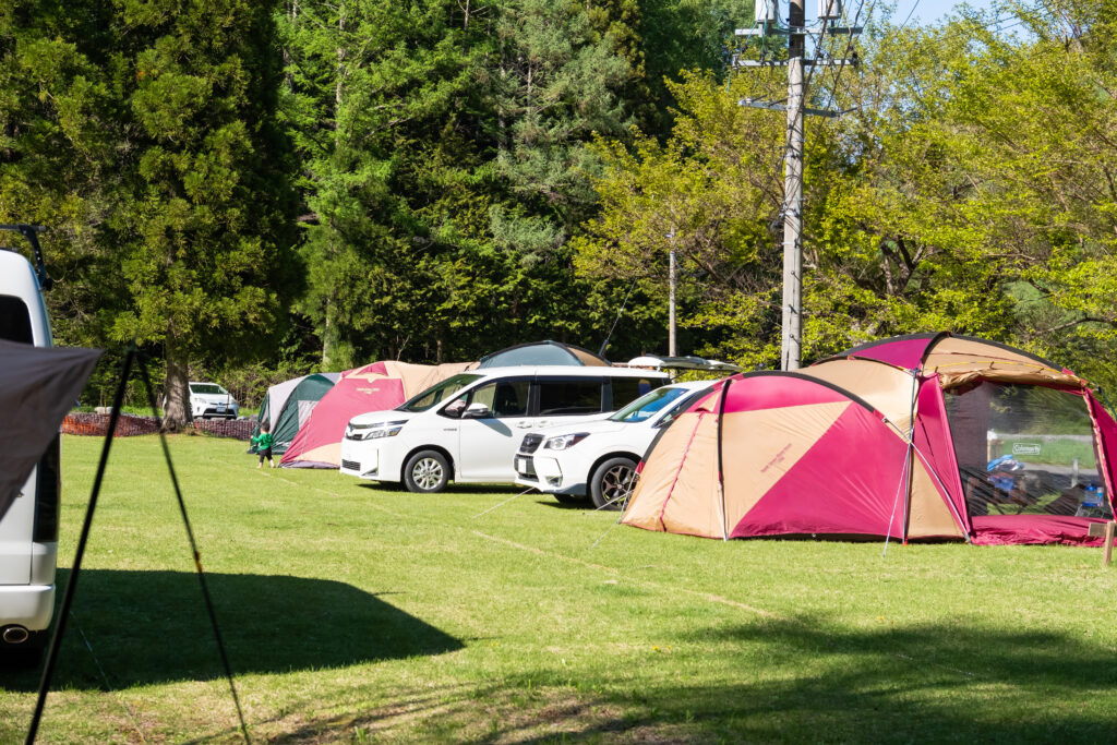綺麗に整備された、広くてふかふかの気持ちのいい芝生の上でキャンプを満喫できます。 管理事務所、トイレ・炊事場が近くにあるので、お子様連れのご家族でも安心です。キャンプ場内のサイトの中でも電波が繋がりやすいです。