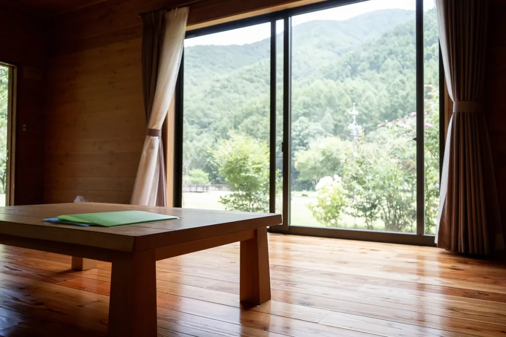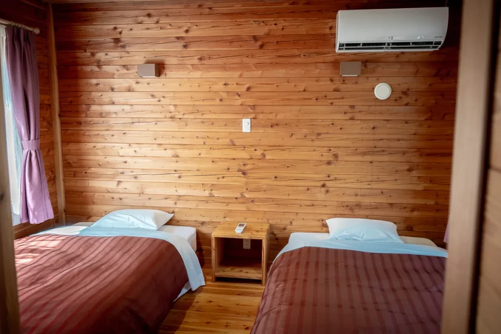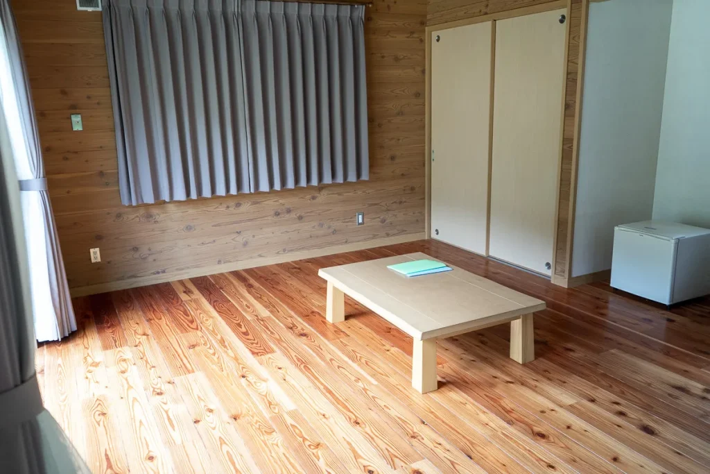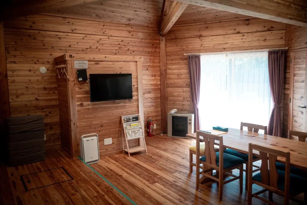 キャンプ場から少し離れたところにある閑静なコテージ。心癒される豊かな自然に囲まれながら、 のんびりとプライベートな空間を満喫できます。開放感あふれる広々としたリビングと、快適設備でラグジュアリーな空間を楽しむことができます。