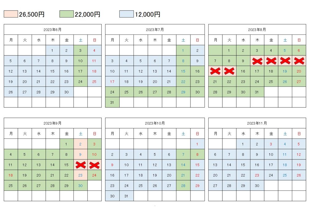 ピンク:26,500円 緑:22,000円 青:12,000円