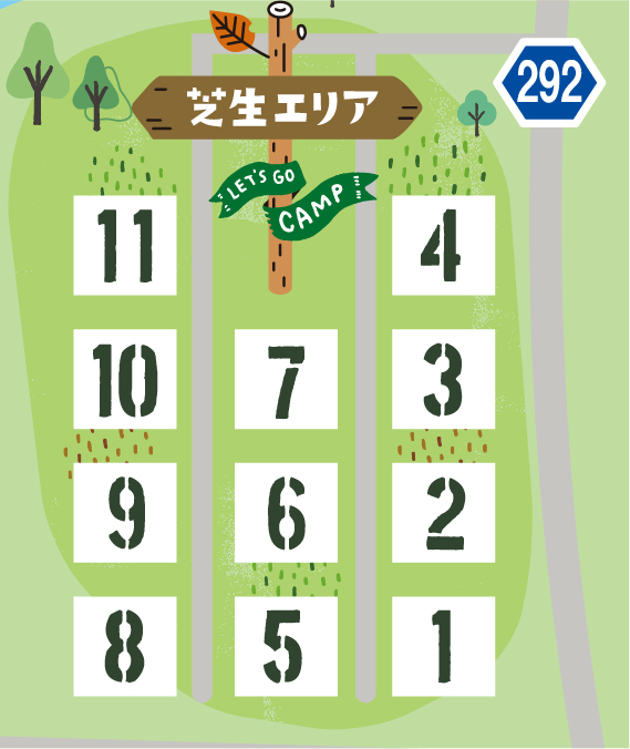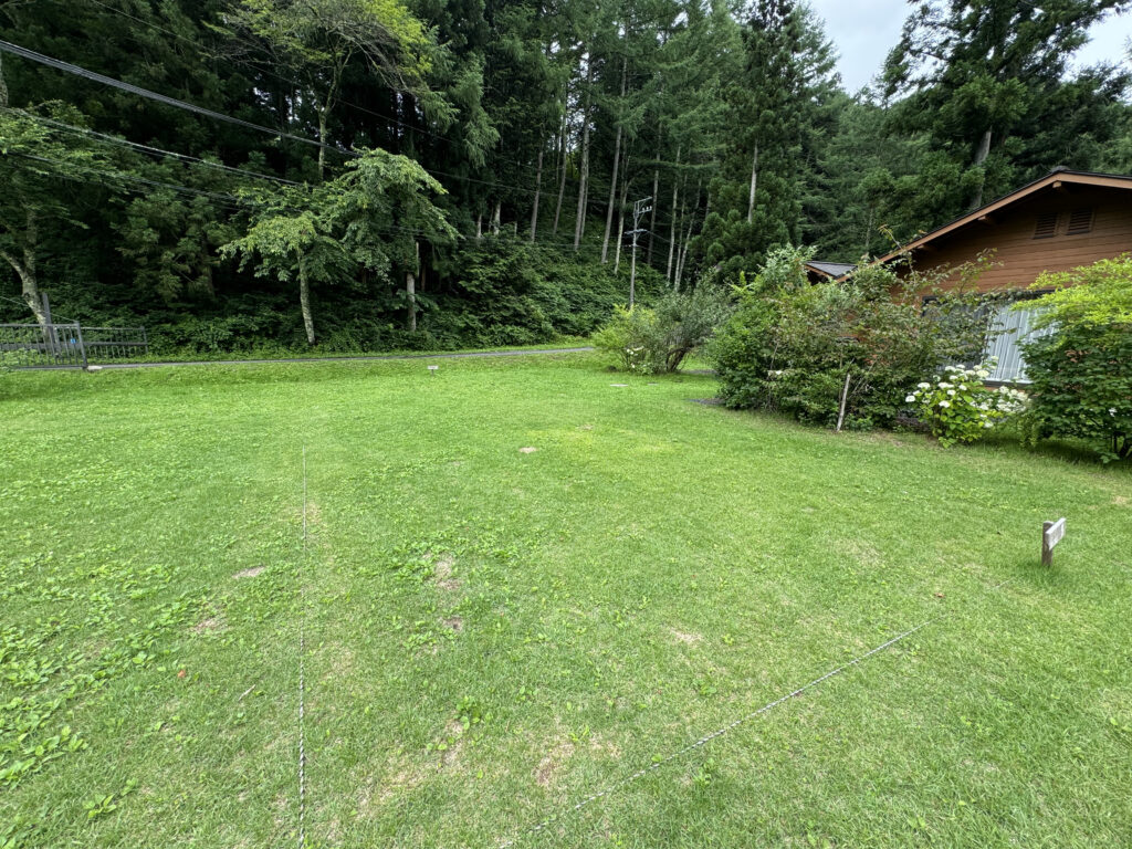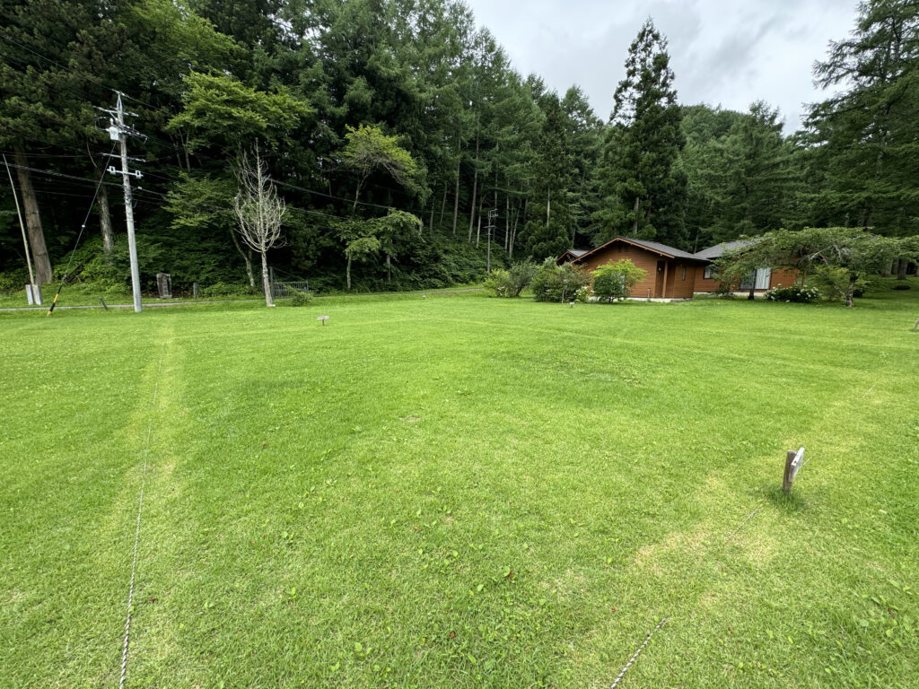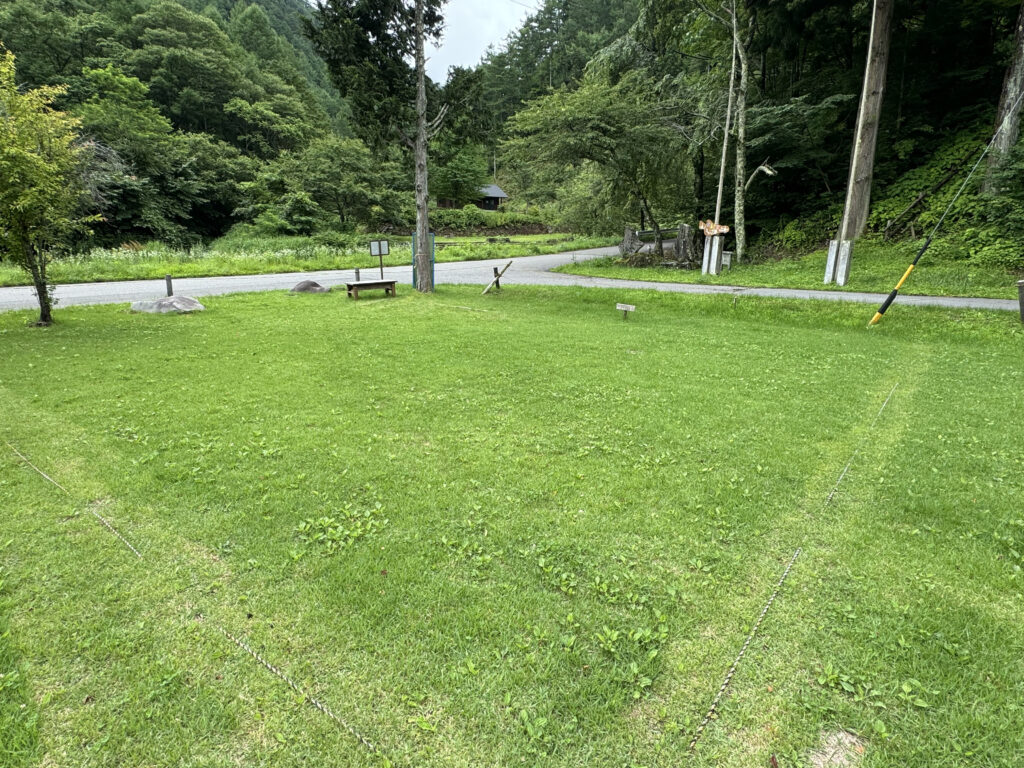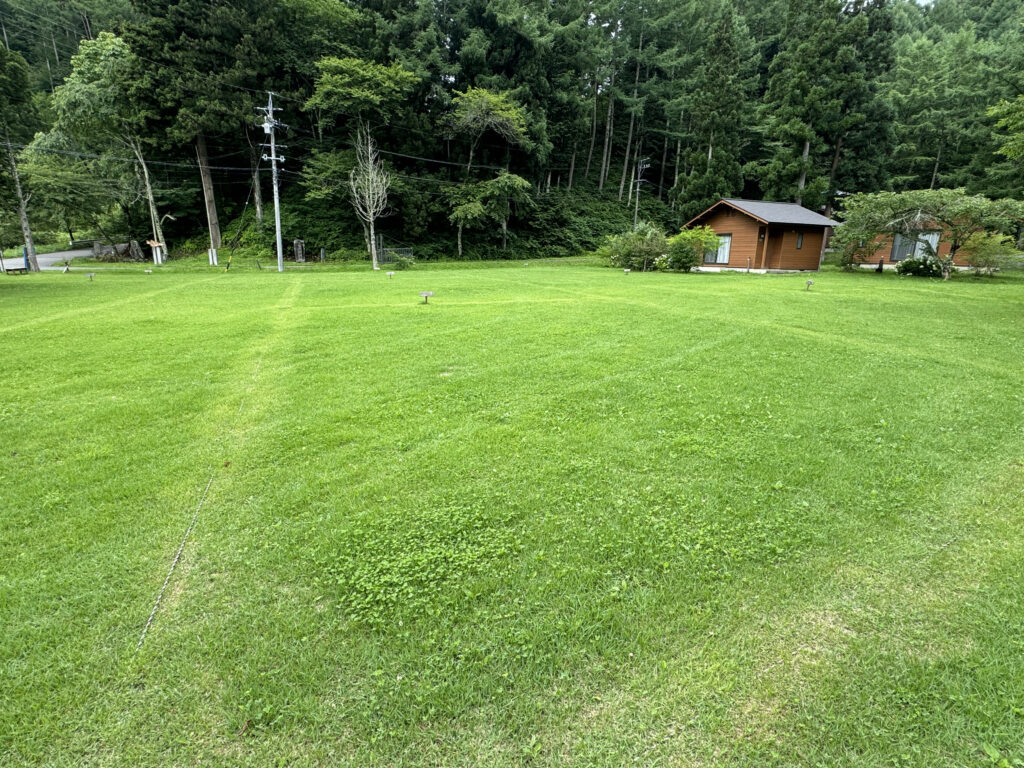 綺麗に整備された、広くてふかふかの気持ちのいい芝生の上でキャンプを満喫できます。管理事務所、トイレ・炊事場が近くにあるので、お子様連れのご家族でも安心です。キャンプ場内のサイトの中でも電波がつながりやすいです。